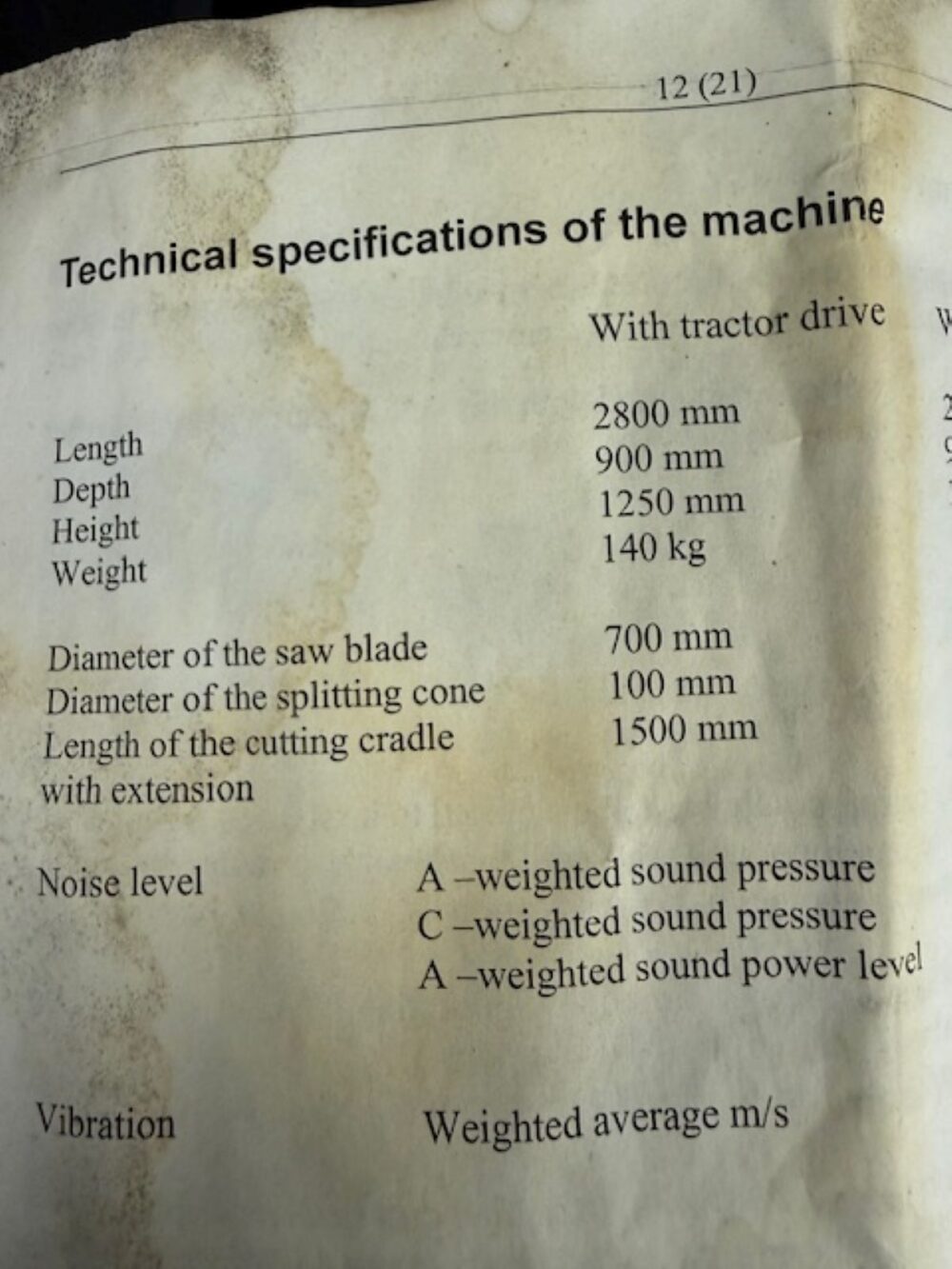28″ Circular Saw with TCT Blade and Splitting Cone.